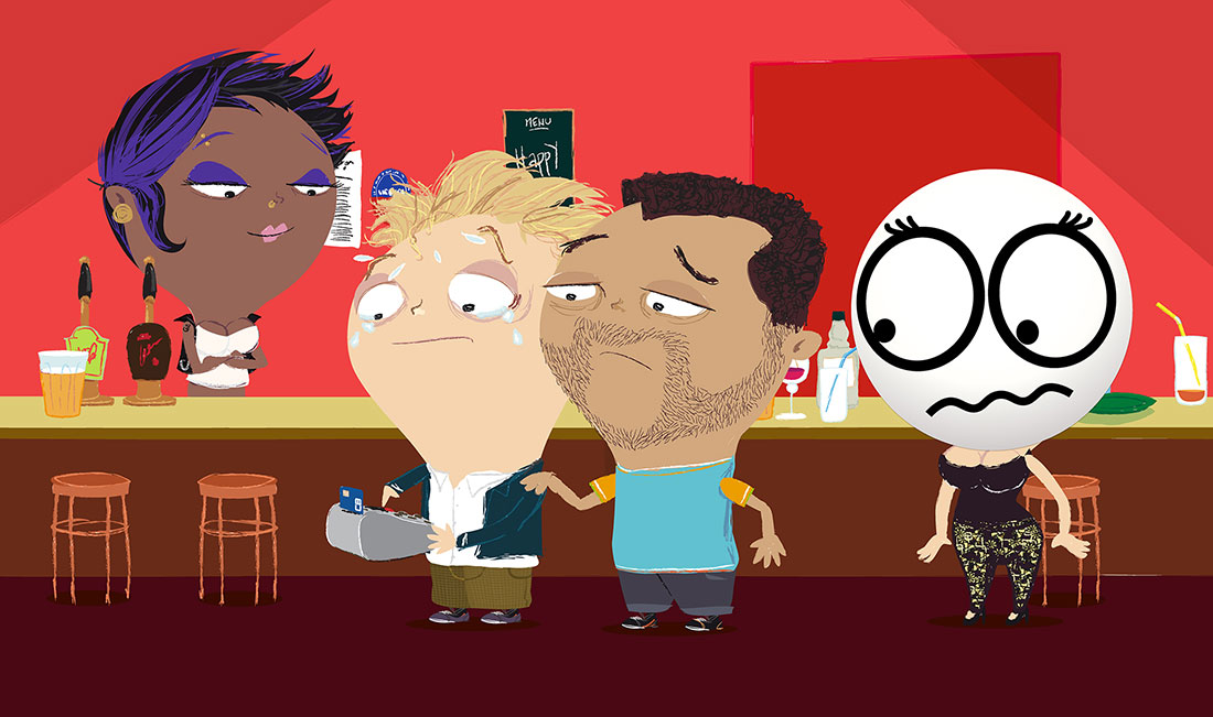 J’ai réalisé les illustrations pour les films en dessin animé — le Top 5 des bonnes raisons d’être SAM (1min49, 2014), animé par John Banana — ainsi que le livret de recettes de cocktails sans alcool (Sam on the Peach, Moto Jito…), les affiches, et les éléments visuels de l’application — émoticônes, pastilles, samfiltres.